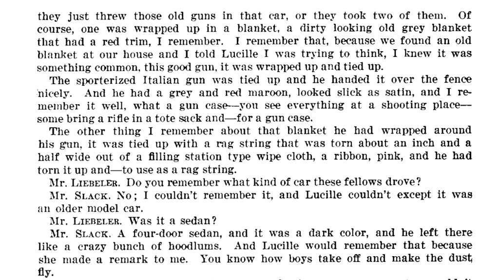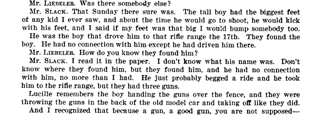 Oh, well, I suppose LHO must have used one of his other rifles. Look here at the testimony of Garland Slack. He is talking about LHO’s multiple guns and and an individual who was with him: