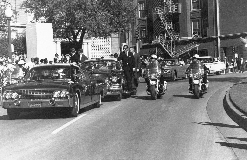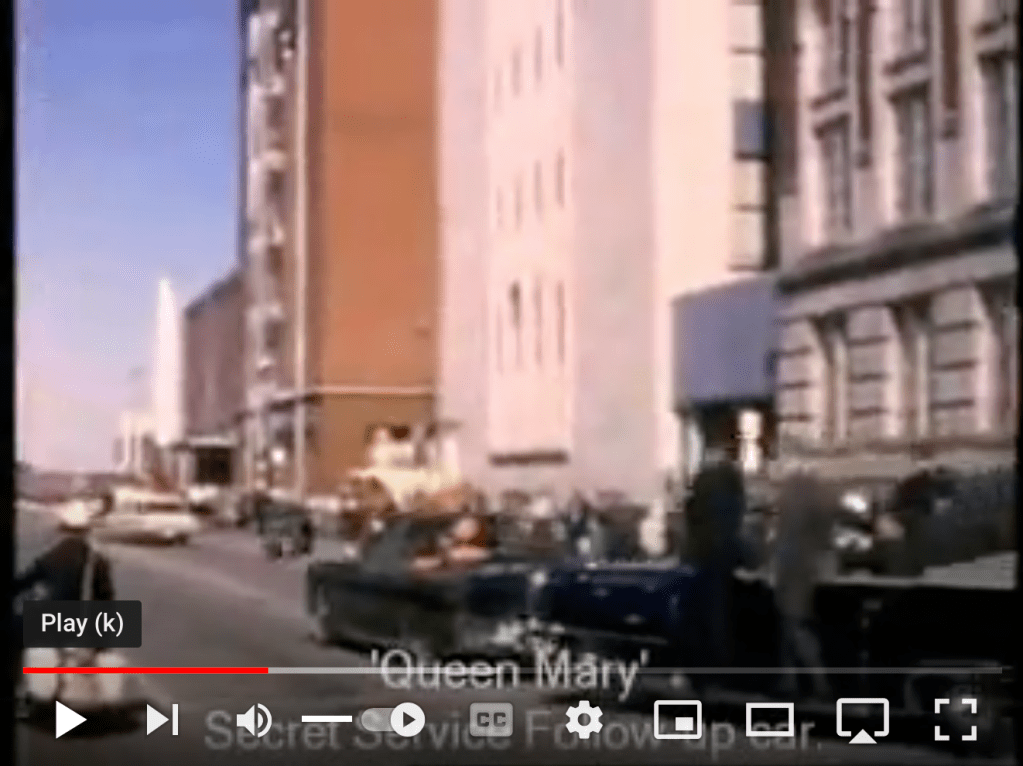 And here is a side shot from the Hughes film as the motorcade is approaching the Dal-Tex building.