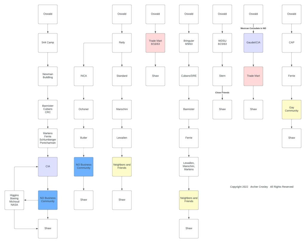 Who were his friends? Who did he hang out with? What you would discover is that there were various groups in Oswald’s sphere of influence. I have detailed some of these in this picture.
