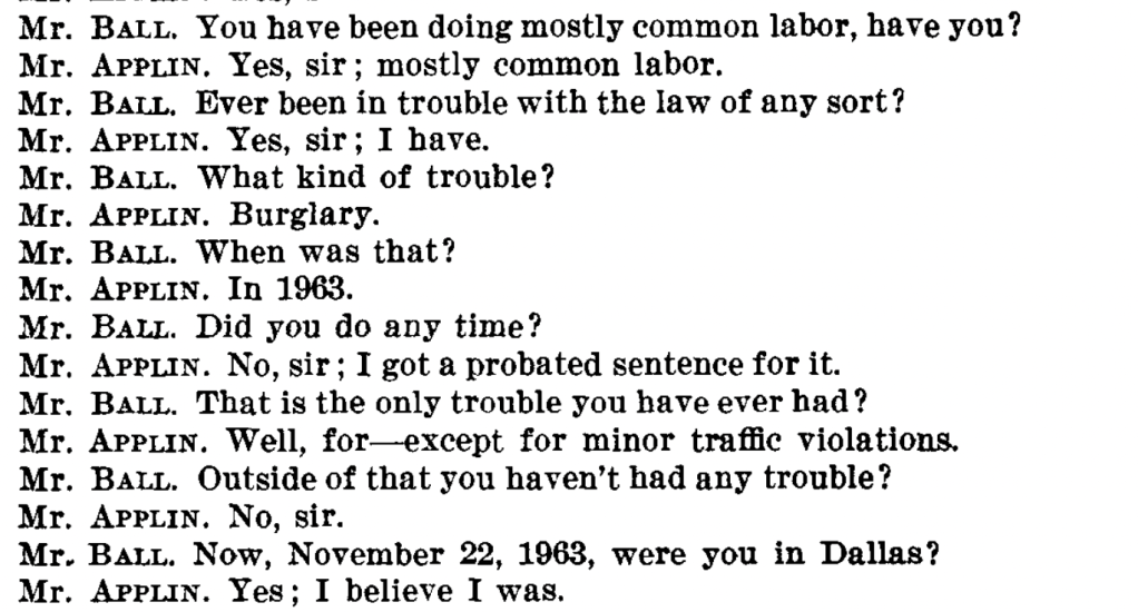 And so the story was changed and now in order to save face for the city of Dallas and the DPD. A story was invented and rehearsed. A narrative was agreed upon. Testimony was suborned not only from the officers but from bystanders like George Applin.