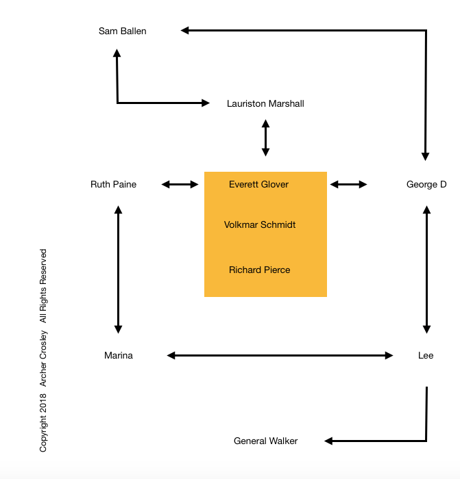 It’s not hard to get people to throw a party. All you do is say: Why don’t we have a party? People love parties. And so the Director engineered the party before the party. He arranged for EG to meet Sam Ballen at a mutual friend’s party. It was essential for the Director to create logical reasons why people met just in case anyone got nosy which as it turns out did happen. The party at Lauriston Marshall’s house was only the pretext to what the Director really wanted – the party at EG’s house where George D and Ruth Paine would meet. That’s where the money was. If the Director didn’t have that meeting, people would question how Ruth Paine became involved. The Director could not have that. He needed a logical pathway that would sell.
