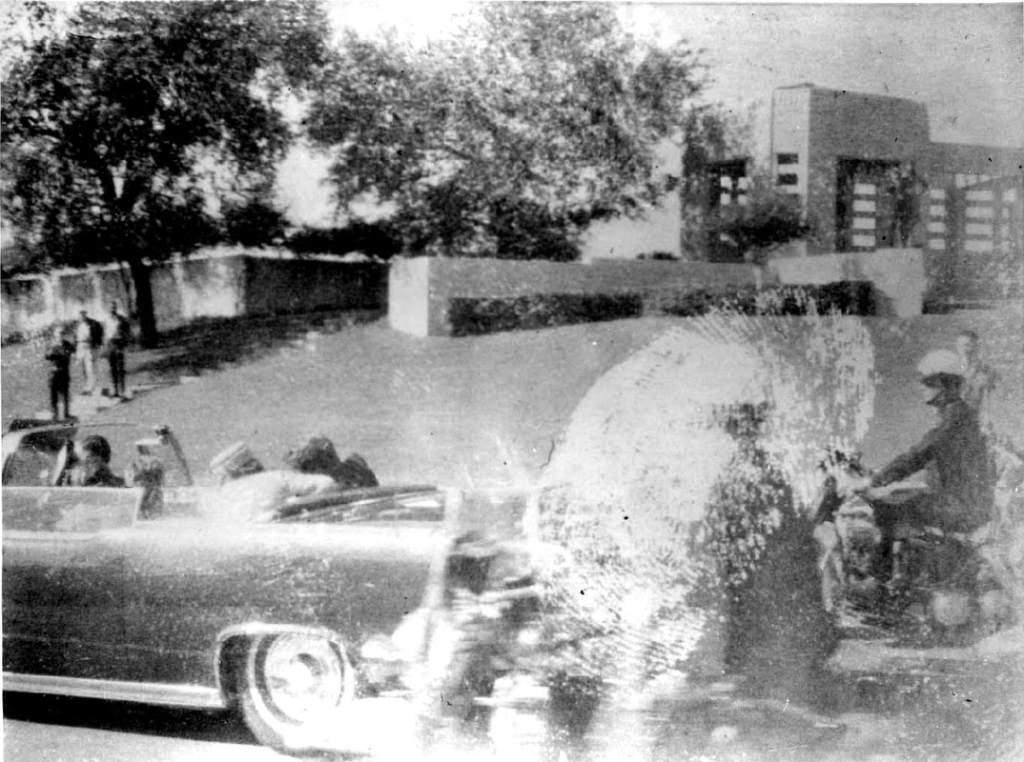 In this picture it appears as if his head is directed down and to his left, but that is a deception, a product of projecting a 3-d image on a 2-d surface. We know it is a deception because of the Moorman photo. Here is the Moorman photo.